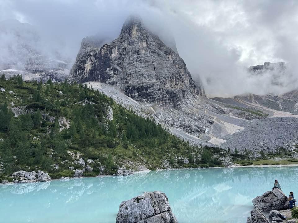 Nakon tog smo se uputili prema Lago di Sorapis, bajkovitom jezeru tirkizne boje, smještenom u kamenitom okruženju na oko 1900 mnv. Iako nema puno visinske razlike, oko 330 m, staza je tehnički zahtjevna zbog skliskosti i blata.