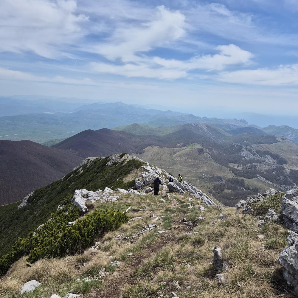 Preko Dušica, visoravni koja svojim mirnim zelenilom nudi predah nakon stjenovitih uspona, nastavili smo put prema Svetom brdu. Sunce nas je pratilo cijelim putem, a vrijeme je bilo gotovo idealno – ni pretoplo, ni prehladno, uz blagi vjetar koji nas je osvježavao.