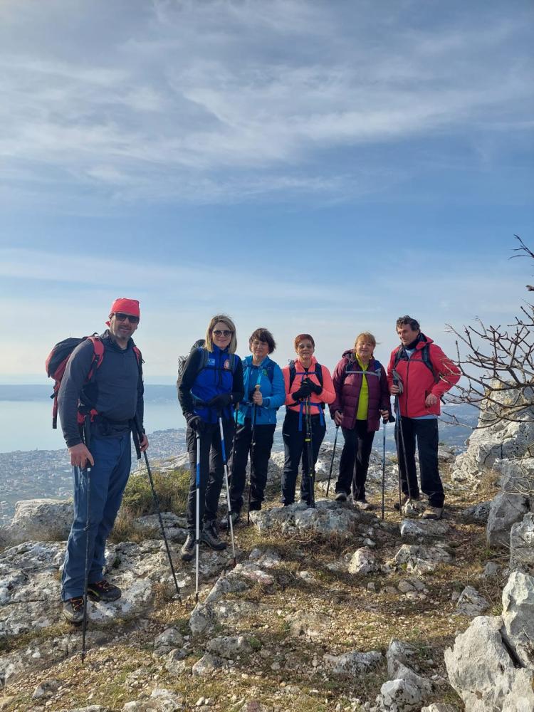 Dan je savršen – sunčan, ugodan i idealan za hodanje. S Kozjaka se pružaju očaravajući vidici: s jedne strane Zagora, a s druge more i otoci. Priroda je u punom sjaju, a mi uživamo u svakom koraku, upijajući ljepotu oko sebe. Mobiteli i fotografiranje radi punom parom – trenutke treba sačuvati.