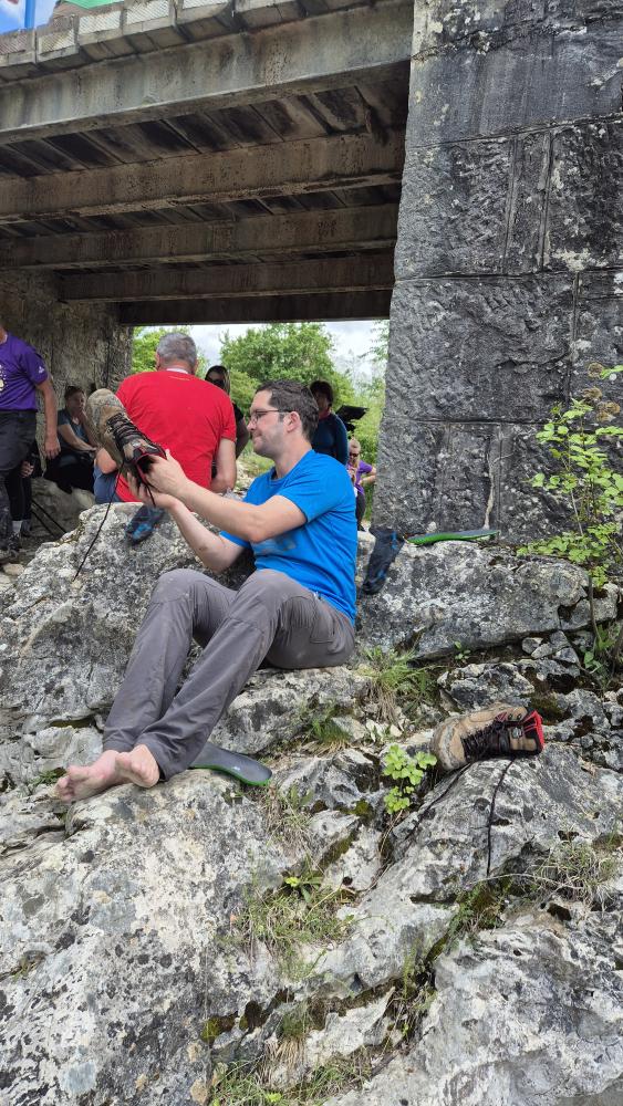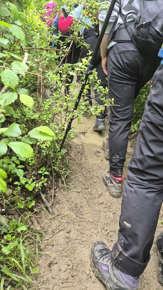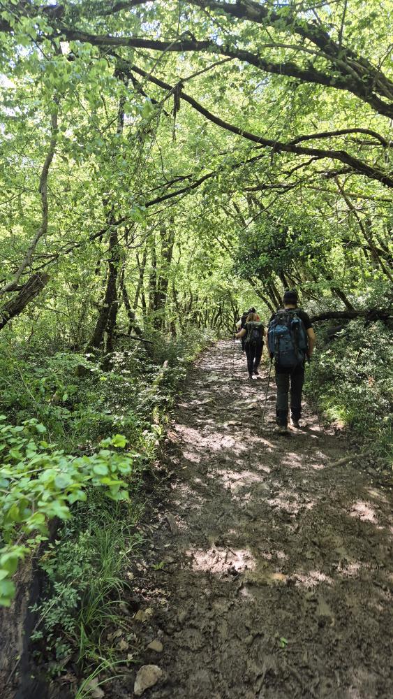 U subotnje jutro obradovali su nas sunce i ugodnih 13 C , pa nakon kave vozimo se do Buzetske pivovare gdje je početak , a ujedno i kraj Staze sedam slapova jer ovo je kružna staza. Nakon što nas je „postrojio“ naš vodič Šime krećemo laganini s lijeve strane rijeke Mirne i ubrzo nakon što se prođe trim staza i Komarov most preko rječice Drage gdje pada zajednička fotka, kroz šumu stižemo do prvog slapa Zagona koji je visok 5 m. Ubrzo slijedi i drugi slap Bačva visok gotovo 9 m u blizini kojeg je i popularno penjalište , a nailazimo i na rudarsko okno gdje se nekad vadio kameni ugljen. Vrlo blizu je i najveći slap Vela peć visok čak 26,5 m. A poprilično se i nagužvalo na stazi, ispred nas je grupa od 50 ak planinara pa valja pričekati osobito kod najzahtjevnijeg dijela staze uspona uz stijenu Greben. To je ujedno prvi i zadnji strmi uspon na ovoj stazi potpomognut sajlama i dijelom metalnim klinovima. Kamenje je zbog noćašnje kiše jako sklisko , pa uz pažnju i koncentraciju te pomoć Šime, Zvone i Tonča svi do vrha dolazimo bez problema. Obavezno fotkanje s pogledom na dolinu odakle smo krenuli. Put dalje kroz šumu vodi do četvrtog slapa Mala peć. Za doći do njega treba malo skrenuti s glavne staze. Ispred slapa formiralo se slikovito jezerce i tu radimo prvu pauzu za malo prezalogajiti i napraviti koju fotografiju. Nakon uživanja kod Male peći vraćamo se natrag na glavnu stazu koja postaje sve više blatnjava, sve više je i planinara u oba pravca. Željno iščekujemo putokaz na kojem piše Kotle i selo Kuhari. Prije najveće atrakcije ove staze, sela Kotli u kojem se nalazi peti slap ,Šime nas malo ubija u pojam- valja nam prohodati još ovoliko koliko smo prošli.Tek smo na trećini staze. I bila bi to gotovo šetnja jer nema uspona ni silazaka, da nije bilo mora blata što su ga stvorile obilne kiše prethodnih dana. Usporilo nas je, bilo je i proklizavanja i padova na stražnjicu ali nam nije umanjilo doživljaj i ljepotu nevjerojatnih oblika korita, brzaka, slapova i jezerca. Peti slap Kotli najpoznatija su turistička atrakcija u unutrašnjosti Istre. Voda je ovdje stvorila „kotle“, fascinantne udubine u stijenama. Tu smo napravili nešto duži predah i popili kavu u najneobičnijem kafiću na kotačima. I oprali u kotlima blatnjave cipele, neki su zagazili i previše pa su nastavak puta prošli s najlon vrećicama preko čarapa u mokrim cipelama. Od Kotla vodio je ne zahtjevan ali i dalje blatnjav put do dva zadnja slapa , šestog slapa Zelenšćak gdje hodamo po krovu vodopada i sedmog slapa Grjok. Oba su visoka 8 m i ispred njih je jezero. Nakon njih čekaju nas tri prelaska preko rijeke, a vodostaj Mirne nam je omogućio da rijeku pređemo bez problema. Kod zadnjeg prelaska Mirne, ovog puta preko mosta, u rijeci čistimo od sveg blata gojzerice i uskoro stižemo do naših kombija. Koliko je Staza sedam slapova duga ? Mi smo gotovo 16 km hodali nešto više od 6 sati s pauzama, slikanjima i čekanjima da svi prođu koji su kao i mi odluči obići stazu. Inače kažu da ovu stazu tijekom sezone posjeti 1000 do 2000 posjetitelja dnevno. Umorni a zadovoljni što smo svi bez problema proši stazu vozimo se prema našem kampu gdje slijedi još jedna zajednička roštiljada .